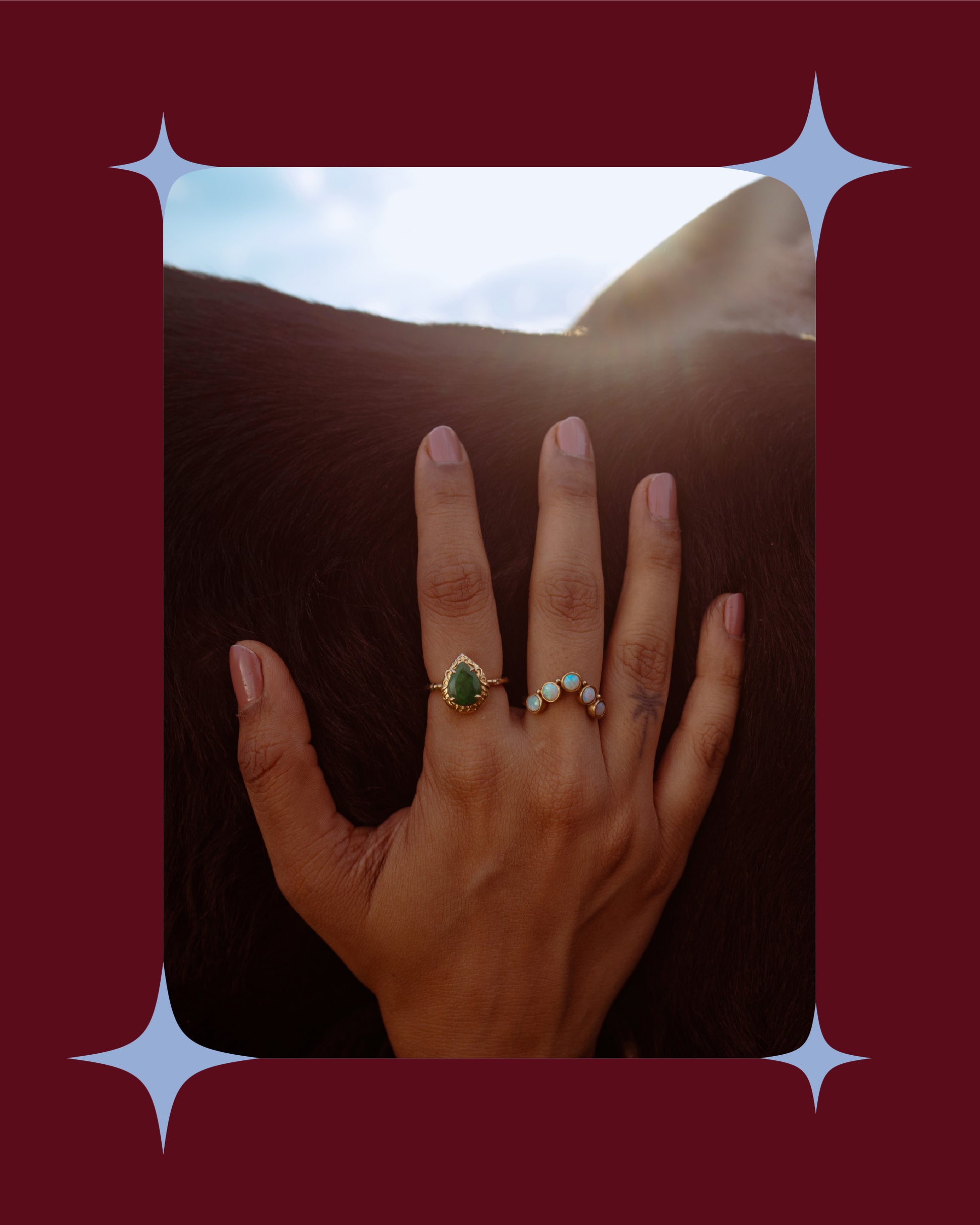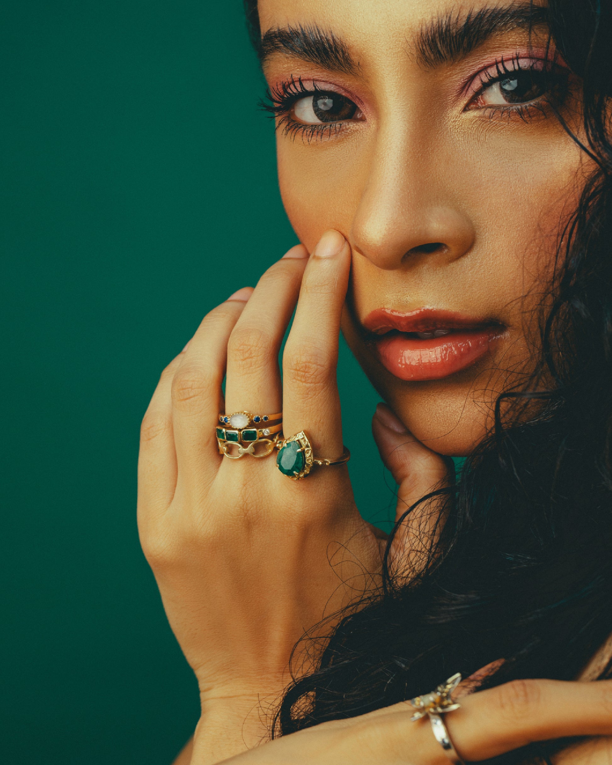 Royalty awakens herself in this ring - crafted entirely in 18k gold, its base adorned with intricate filigree that echoes ancient palatial scrollwork. At its heart lies a beautiful pear-shaped emerald, held in claw settings that allow every facet to dance with light, creating a mesmerizing play of brilliance and depth.
