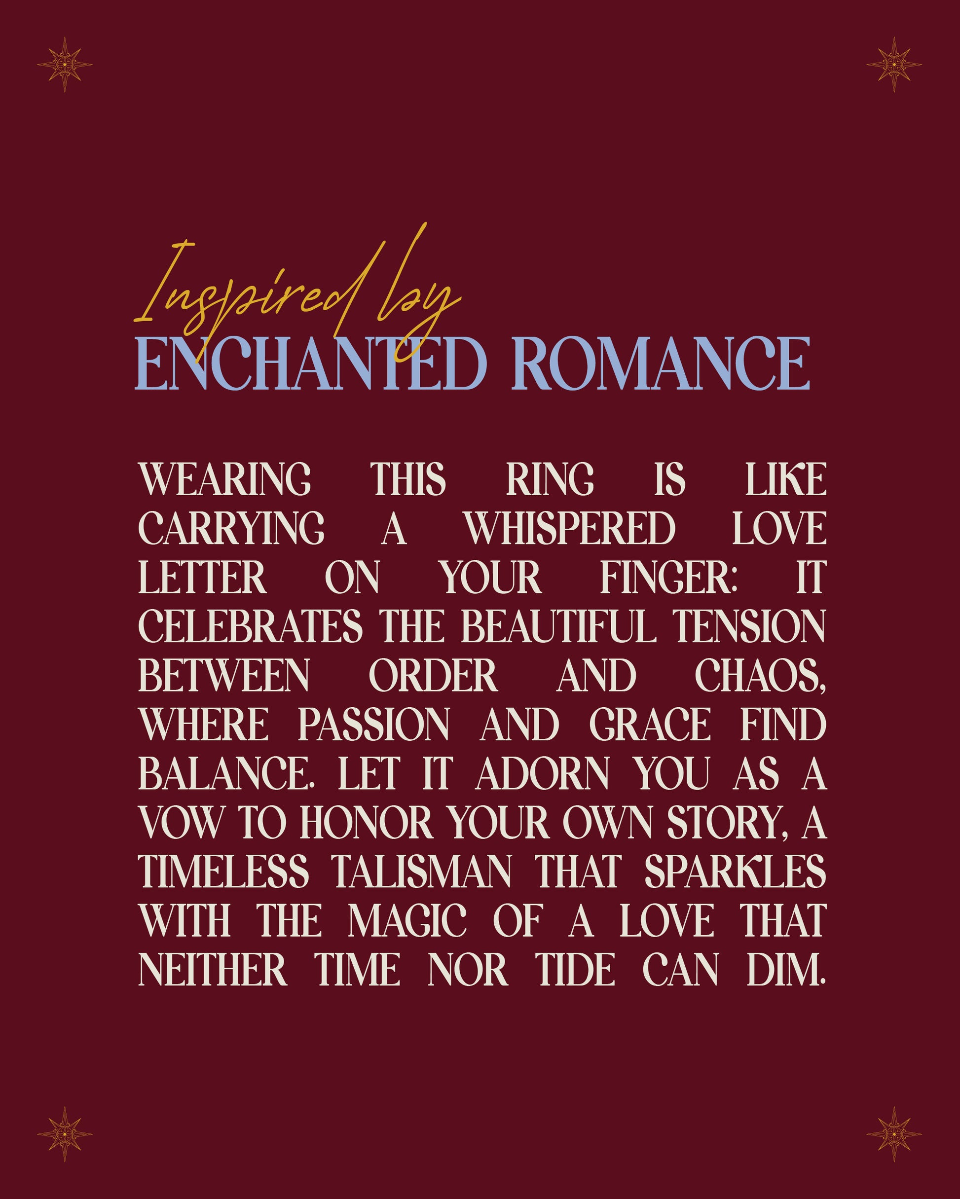 Wearing this ring is like carrying a whispered love letter on your finger: it celebrates the beautiful tension between order and chaos, where passion and grace find balance. Let it adorn you as a vow to honor your own story, a timeless talisman that sparkles with the magic of a love that neither time nor tide can dim.
