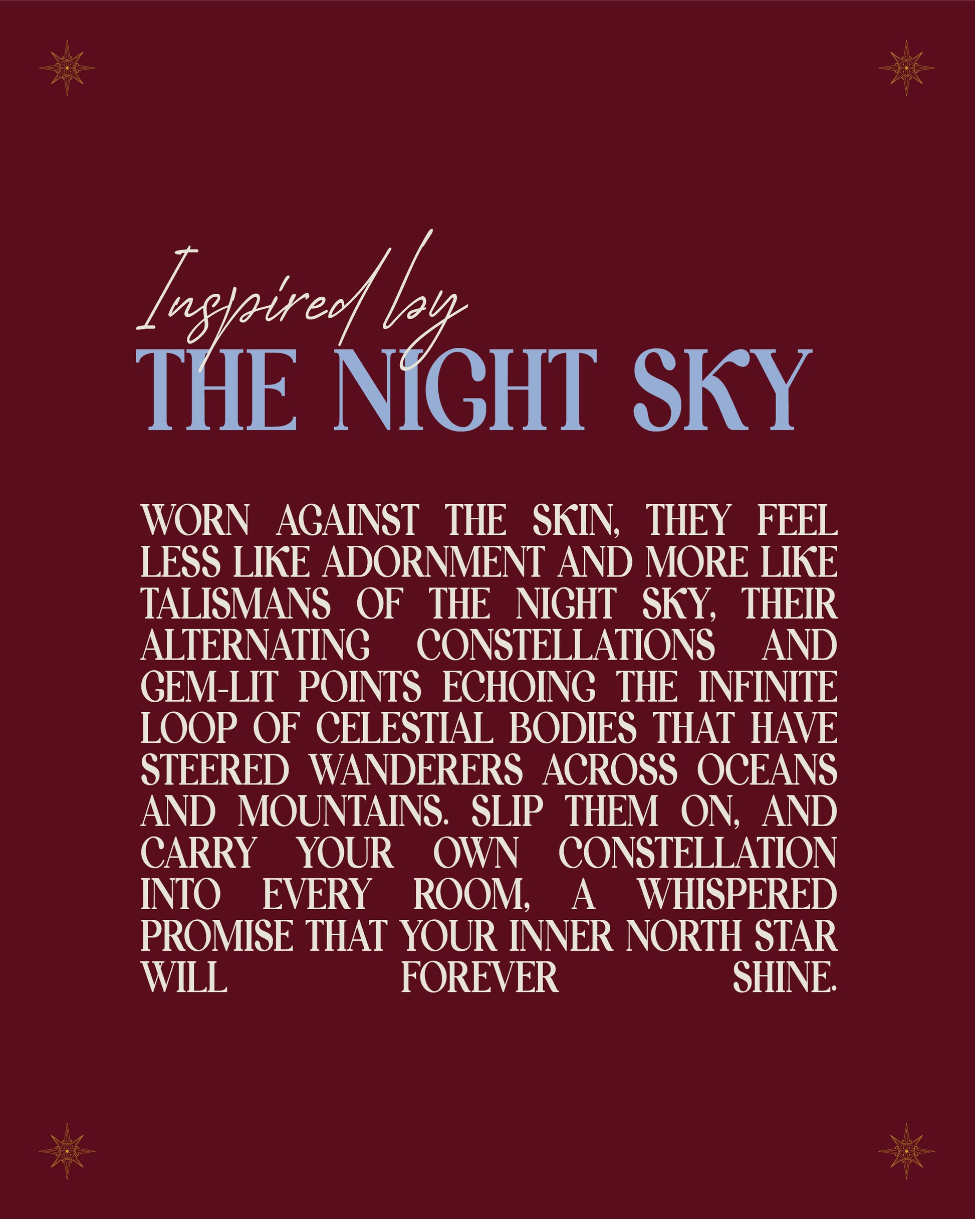 Slip them on, and carry your own constellation into every room, a whispered promise that your inner north star will forever shine.