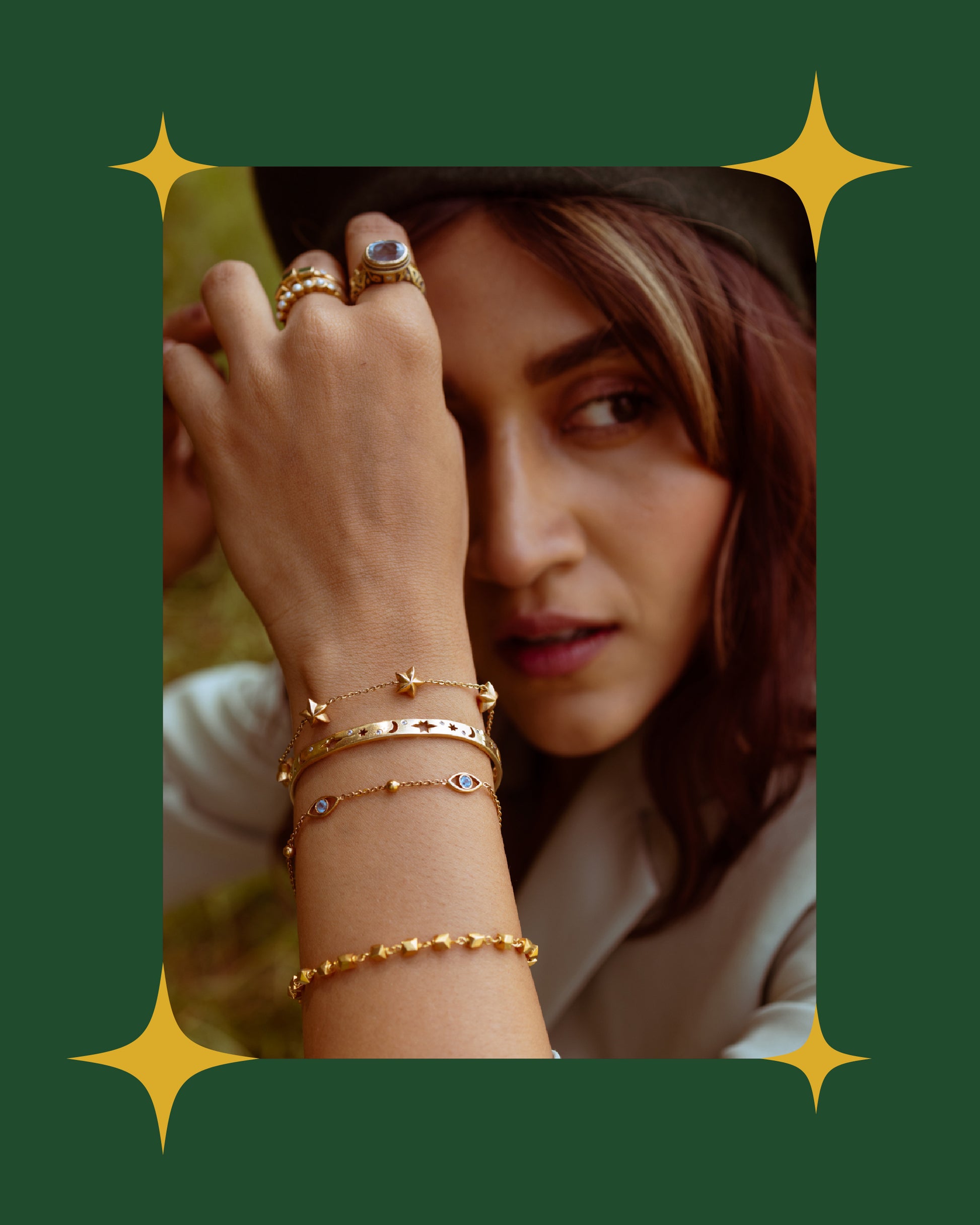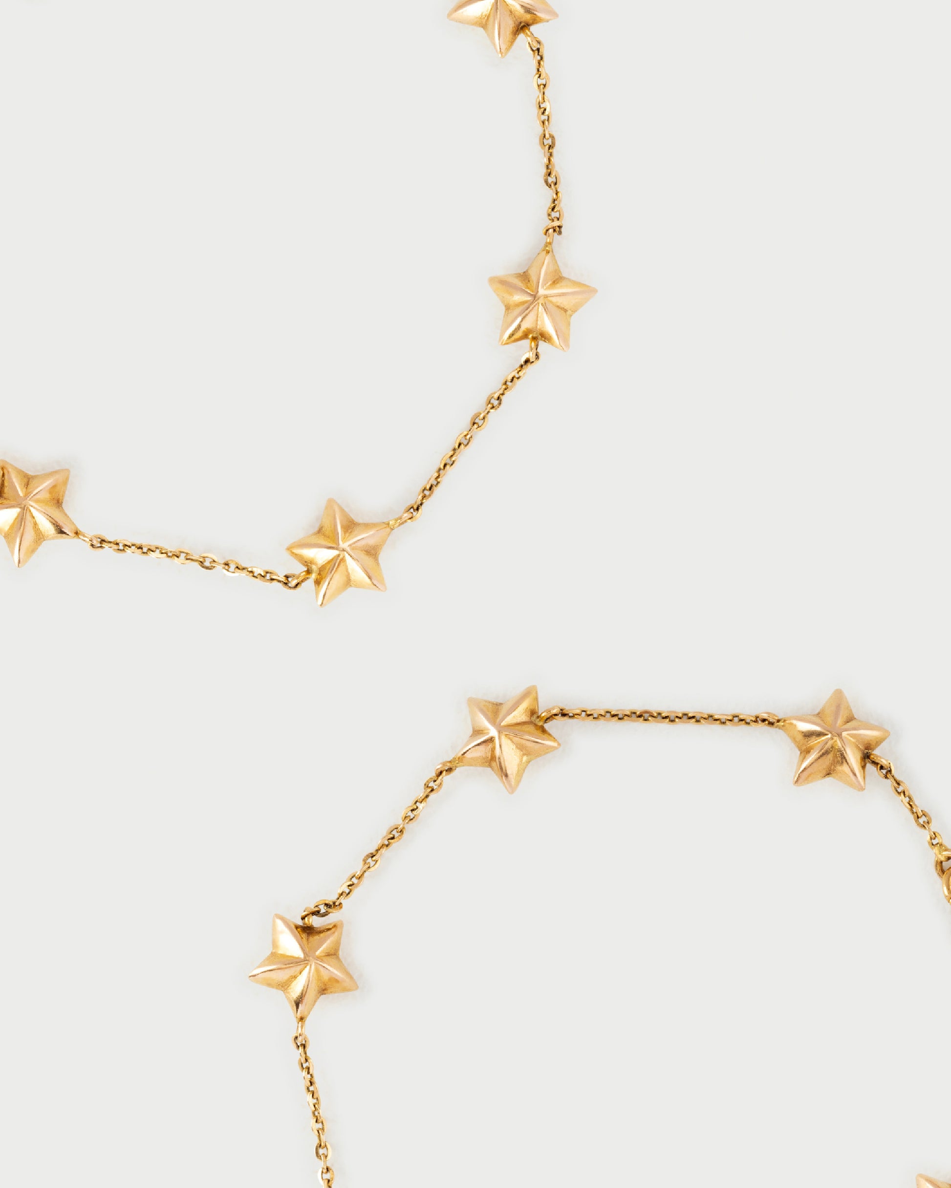 Beneath the hush of Nagaland’s highlands, as dawn’s first light clings to Dzuleke’s untouched skies, a slender 18k gold bracelet was born - so fine it seems spun from sunlight itself. Along its length, polished golden stars - each hand-sculpted and poised at equal intervals - catch stray beams like scattered constellations come to rest, just like our Dzuleke Necklace.