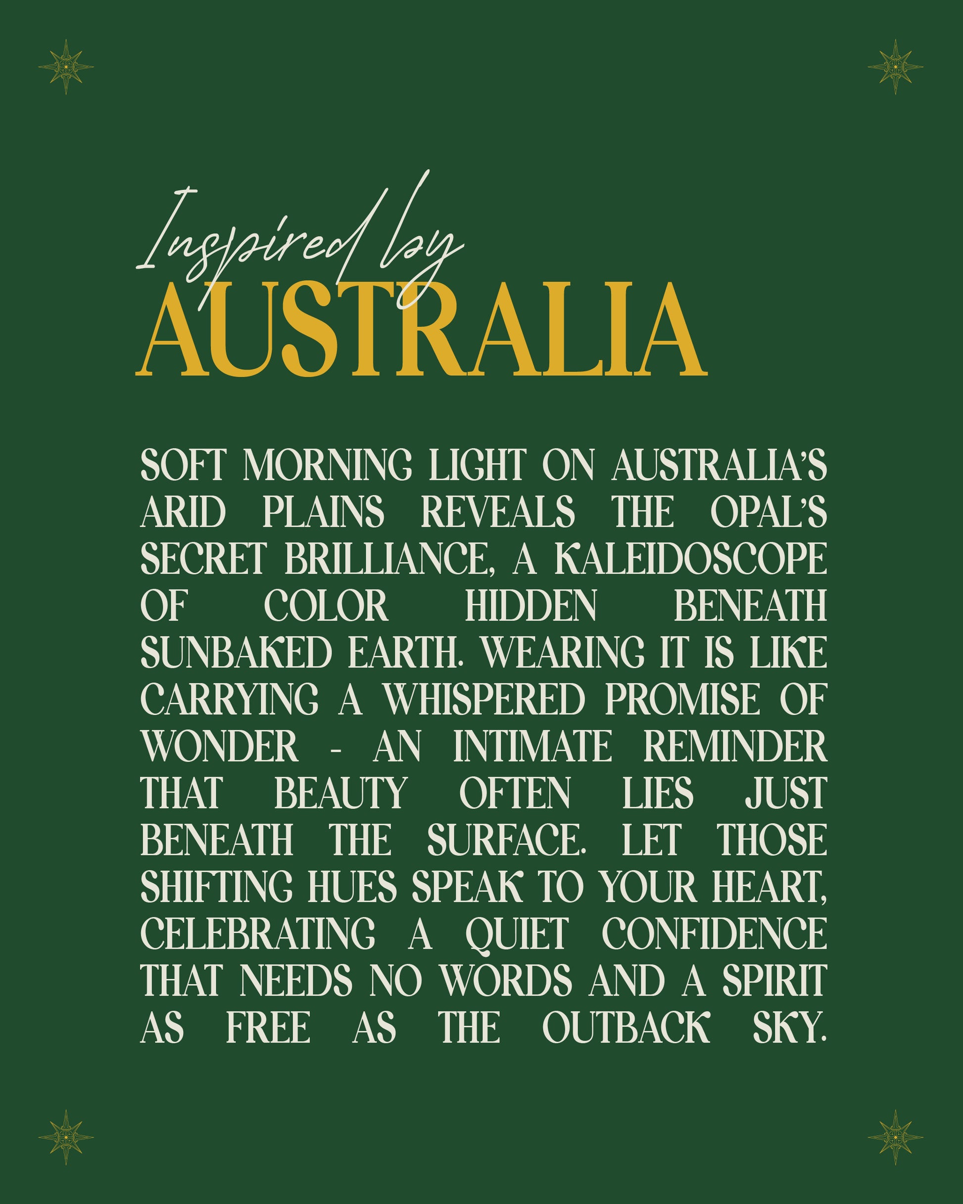 Wearing it is like carrying a whispered promise of wonder - an intimate reminder that beauty often lies just beneath the surface. Let those shifting hues speak to your heart, celebrating a quiet confidence that needs no words and a spirit as free as the outback sky.