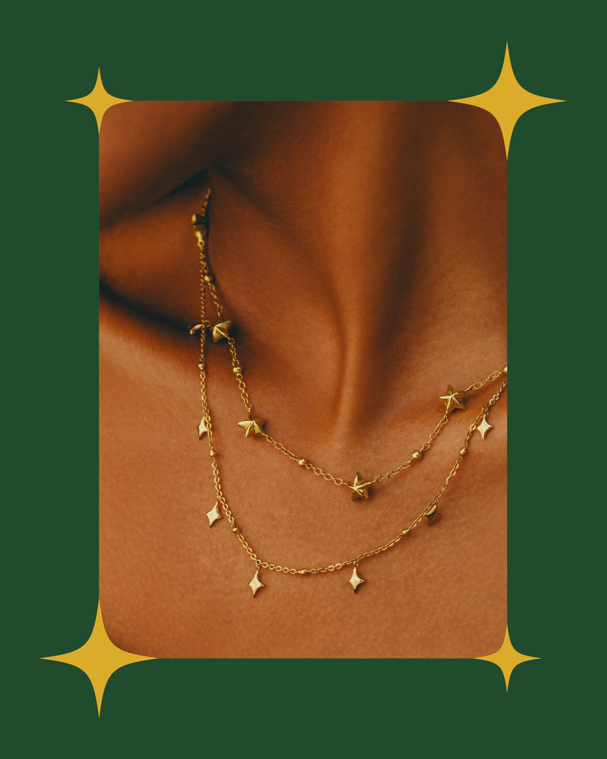 Long ago, beneath a velvet sky spun with distant galaxies, a master jeweler sought to capture the hush of cosmic wonder in a single piece. He chose a whisper-thin 18k gold chain - so delicate it seemed to float - and interspersed it with gleaming starburst motifs, each twinkling like a secret constellation caught mid-dance.